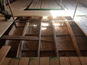 Tavolato di sicurezza e di lavoro all’interno del volume vuoto nel transetto sinistro