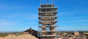 Proseguono le attività di restauro conservativo e consolidamento edilizio nel transetto sx e nel campanile della chiesa Collegiata. Anche in questi giorni le maestranze specializzate delle imprese appaltatrici stanno eseguendo delicate e complesse attività all’interno dei volumi contenuti dagli storici muri del fabbricato. Non appena le condizioni di accessibilità al sagrato lo consentiranno si procederà alla consegna dei profili di acciaio di irrigidimento strutturale del campanile, che consentiranno pure la realizzazione della scala di accesso alla cantoria e alla cella campanaria, anch’essa da consolidare.