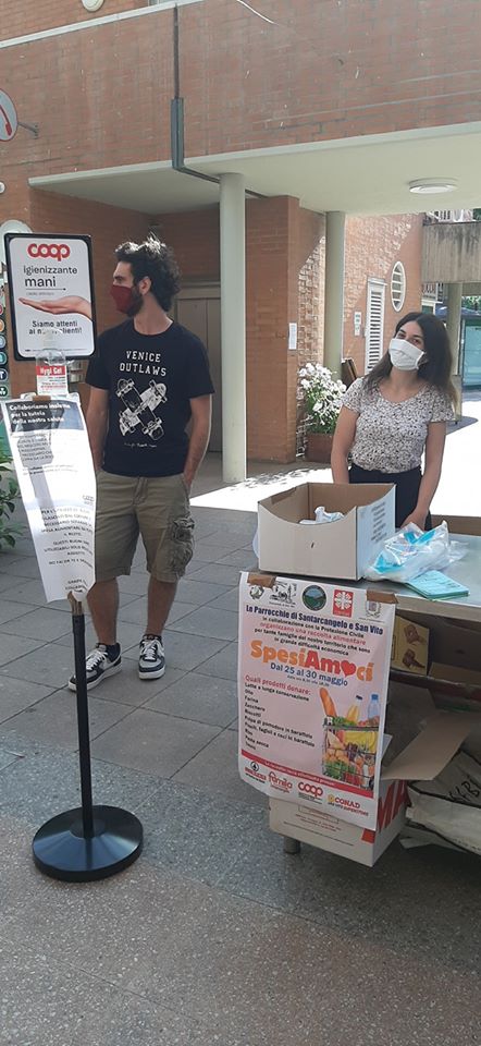 Grande successo di SpesiAMOci, la spesa solidale a favore delle famiglie seguite dalle Caritas delle parrocchie di Santarcangelo e san Vito. Da lunedì 25 maggio fino a sabato 30 i volontari e le volontarie delle parrocchie in collaborazione con la Protezione Civile e i Campolavoratori sono presenti davanti ai supermercati di Santarcangelo e san Vito per invitare tutti a compiere un gesto di solidarietà.